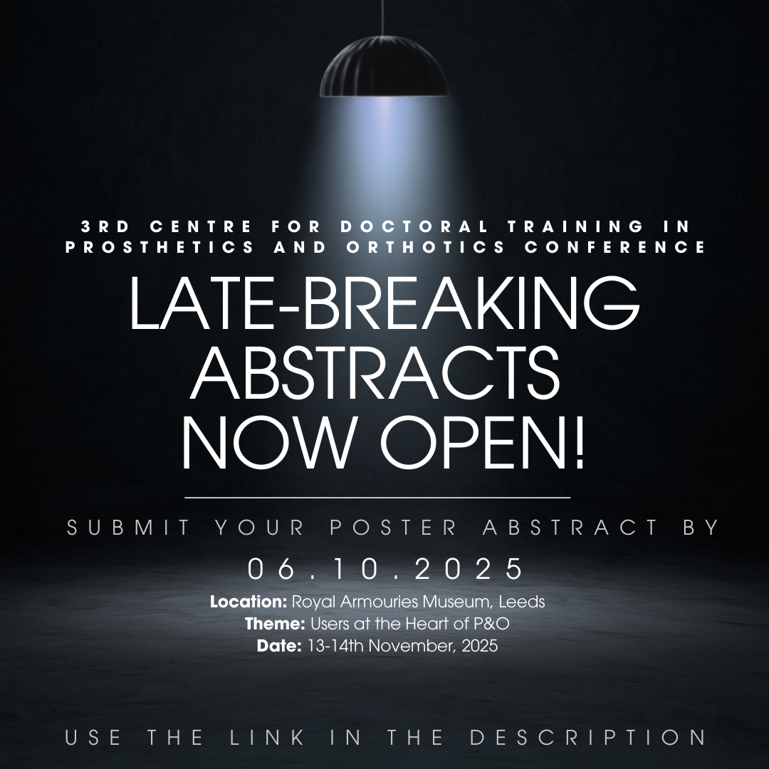 Join us in showcasing cutting-edge research and innovation that puts users at the centre of prosthetics and orthotics. We welcome submissions from researchers, clinicians, and students (including undergraduates) across a wide range of disciplines, from biomechanics and engineering to patient experience, design, disability studies, and more.